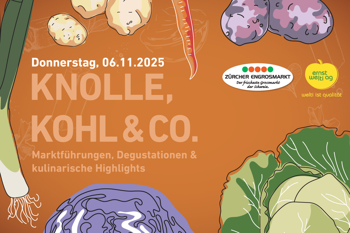 Am Donnerstag, 6. November 2025, findet in der Zürcher Engros Markthalle der diesjährige Herbstanlass unter dem Motto „Knolle, Kohl & Co.“ statt. Von 04:00 bis 07:00 Uhr erwartet Sie ein abwechslungsreiches Programm mit Marktführungen, kulinarischen Highlights und spannenden Einblicken rund um das Thema Herbstgemüse.